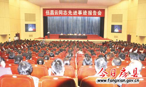 今日房县网讯 记者赵爱平 特约记者况建斌 报道: 5日,伍昌云先进事迹报告会在市行政服务中心隆重举行。市委常委、统战部长彭承志主持报告会并讲话,市人大副主任陈冬芝、副市长潘晓东、市政协副主席刘修俊,市委宣传部副部长曹明权,县委常委、宣传部长徐锦凤与600余名市直单位干部职工、教师代表一起聆听了报告。