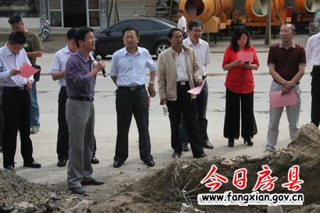 图为人大代表、政协委员们视察房陵大道东段察看雨污分流工程建设情况
