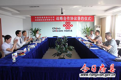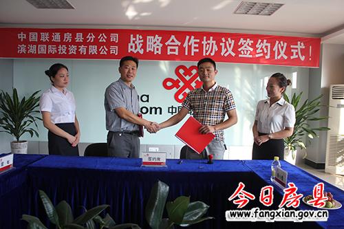 今日房县网讯 16日下午,中国联通十堰分公司与滨湖国际(房县)酒店投资有限公司战略合作协议签署仪式在房县联通公司举行,县联通公司总经理贺茂春代表中国联通十堰分公司与滨湖国际(房县)酒店投资有限公司总经理刘立勇在合作协议书上签字。这标志着双方合作进入更深层次的发展阶段。