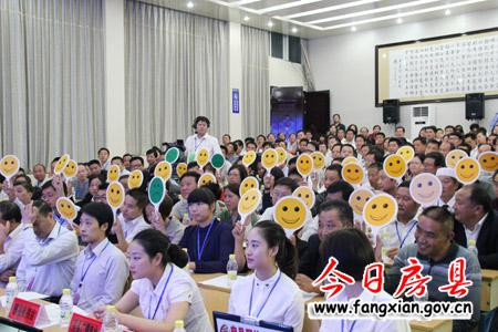 沟通共话发展良策。面对提问,部门“一把手”就如何有效保障食品安全、加快供水供电基础设施建设、提升城市建设与管理水平等问题,做出回复和限期整改承诺。台下,由36名县人大代表、行评代表、群众代表组成的评判团现场“打分”,被问政干部们意切情真解民困的作风受称赞。