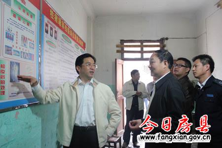 今日房县网讯 记者杨鹏通讯员 报道:27日,县委副书记张慧彬、副县长姚峰带领县畜牧局、商务局负责人到城关、军店生猪定点屠宰厂,察看厂内环境卫生保持情况,翻阅动物检疫日常管理台账,询问生猪屠宰操作流程规范情况,并在畜牧局会议室召开工作会。