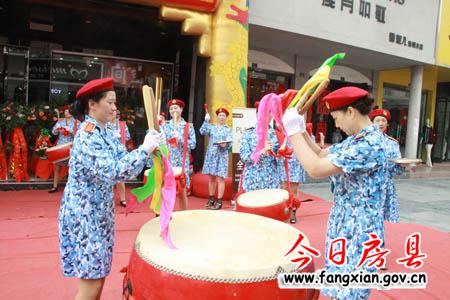 “唐城女子威风锣鼓队”为新开张店铺表演