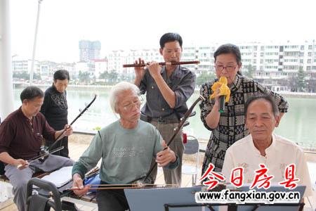 1日,记者在西河广场看到,市民聚集在这里吹拉弹唱,自发参与到丰富多彩的文体活动中,共同分享祖国繁荣发展建设成果, 庆祝祖国第64个生日。 (雷洁 摄)