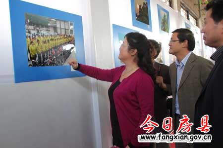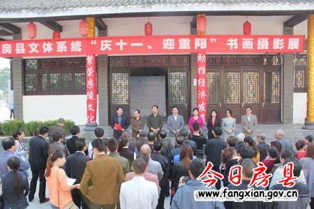 今日房县网讯 记者杨鹏雷洁毛俊杰通讯员李丽 报道:9日,房县“庆十一、迎重阳”书画摄影展开展。县委常委、宣传部长徐锦凤宣布展会开幕,并到现场观摩参展作品。