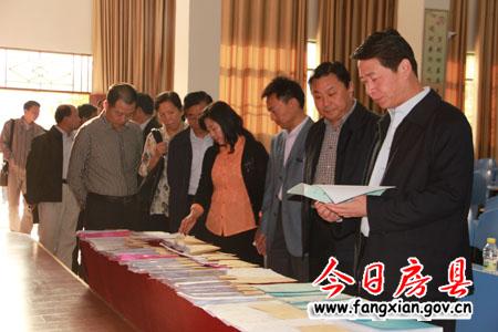 刘安民一行在县东城小学察看校园安全管理档案