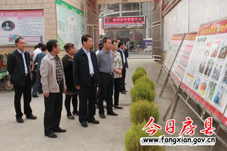 刘安民一行在城关镇东关社区察看综治管理宣传栏