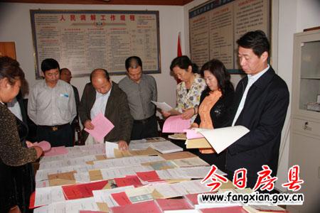 刘安民一行察看城关镇东关社区综治工作档案