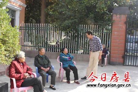 图为雷宏科(右一)与老人们亲切交谈的情景。