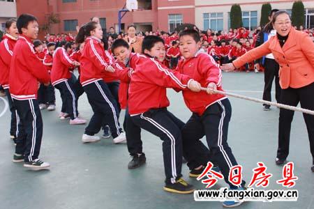 在激昂的运动员进行曲中,教师乐队、彩旗队、鲜花队、花环队、裁判员队、运动员代表队排着整齐的队伍,迈着豪迈的步伐走上运动场,展示了实验小学师生积极进取、健康向上的精神风貌。开幕式上还举行了别开生面的文体表演,各年级激情拉歌比赛、集体舞《童年》、广播操队列表演等节目将现场推向高潮。最后在六年级拔河总决赛的欢呼声中,开幕仪式拉下帷幕。