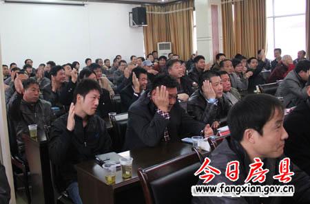 协会成员单位代表举手表决是否通过《房县建筑业协会章程》