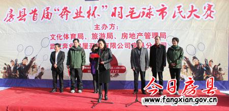 开幕式结束后林华到奔业沁园羽毛球场观看了羽毛球表演赛,随后,比赛正式开始。据悉,首届“奔业杯”羽毛球市民大赛由县文体局、旅游局、房管局、武汉奔业房屋开发有限公司联合举办;竞赛项目分羽毛球男单、女单,共吸引126名羽毛球爱好者参赛;比赛日程安排在11月24日至12月1日,将决出男单、女单前30位排名。