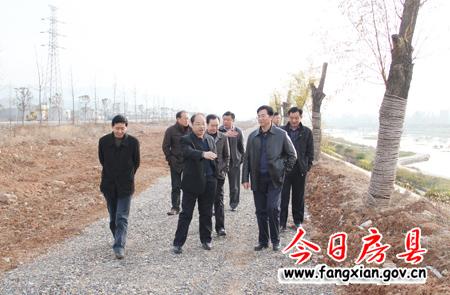荆门市考察团在县委副书记陪同下考察生态河堤建设情况