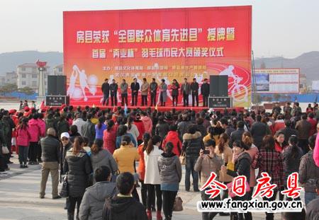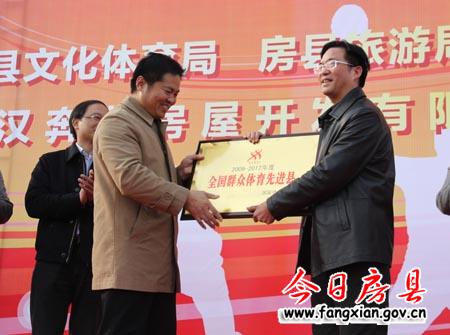 徐锦凤在致辞中说,此次获得“全国群众体育先进县”荣誉县称号,是国家对房县文体事业发展的充分肯定,希望各相关单位,要以此为鞭策,进一步加大对群众体育活动的重视,全面加强全民健身运动的宣传引导,加大对群众文体活动基础设施建设和群众文体活动的支持力度;要更加深入地贯彻落实好《全民健身条例》,积极级开展好各类群众文体活动,鼓励、引导更多社会组织、群众主动加入到全县全民健身的队伍中来。