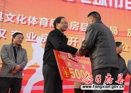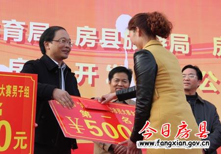 县委副书记、代县长蔡贤忠为男子组第一名选手颁奖