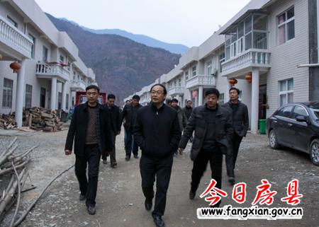 图为蔡贤忠一行查看九道乡义渡坪村移民安置小区建设情况