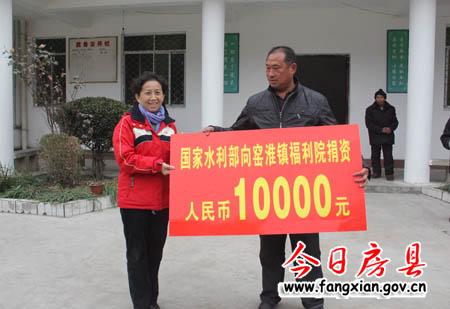 陈群香代表国家水利部向窑淮镇福利院捐资1万元