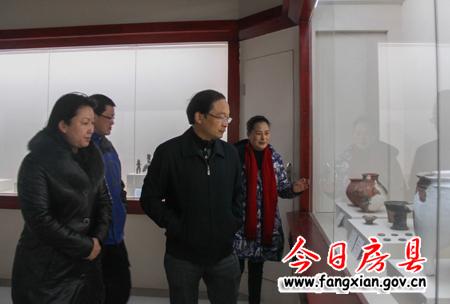 图为蔡贤忠一行在县博物馆查看文物陈列展览