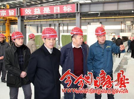 图为副县长石教辉(右二)陪同市安全生产考核组在赛武当新型建材有限公司检查