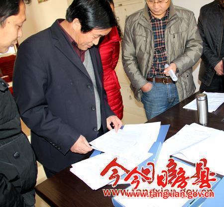 图为考核组抽查野人谷镇安全生产档案资料