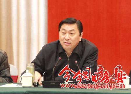 图为县委书记沈明云在会上讲话