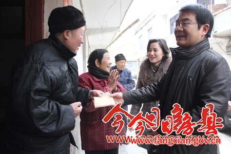 县委常委、组织部长、统战部长陈渊将慰问金送到台胞台属手中