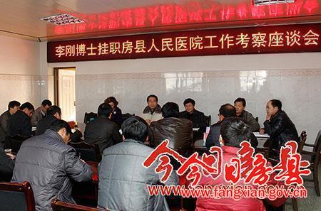 今日房县网讯 通讯员 裴中东 报道: 17日,按照省委组织部、共青团湖北省委关于做好第二批“博士服务团”总结考核工作的通知要求,湖北医药学院党委常委、副校长徐少勇率考察组赴县医院,对“博士服务团”成员李刚在县医院挂职锻炼一年来的工作、学习和生活等方面进行全面考核。县委常委、组织部部长陈渊陪同考核。