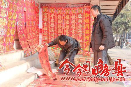 大年三十,街上还是能看见不少人正忙着***联、买“福”字,准备年货,谁也不能阻挡他们喜迎春节的脚步。这正是,家家户户迎春节,古城房陵年味浓。(杨鹏 摄)