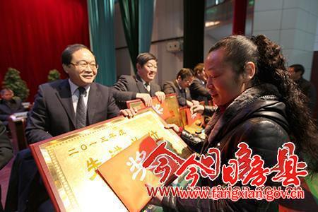 会上,县委常委、常务副县长王家波宣读《关于2013年度发展新项目培植新财源奖励情况的通报》。县委常委、县委办公室主任张永平宣读《关于表彰2013年度全县经济社会发展先进单位和先进个人的通报》。会议还对城关镇党委政府等5个红旗乡镇,县发改局等7个红旗单位,野人谷镇党委政府等54个先进单位,军店镇双柏村等20个红旗村,张林峰等168名先进工作者,杨如成等10名“十佳”爱岗敬业标兵,任传轲等10名“十佳”优秀村党支部书记,红塔镇党委政府等10个财源建设先进单位,军店镇党委政府等15个招商引资工作先进单位和付必久等15名招商引资工作先进个人,县交通局等11个项目争取工作先进单位和杨立武等10名项目争取工作先进个人,县经信局等15个服务项目建设先进单位和付斌等20名服务项目建设先进个人予以表彰。红塔镇、水务局等单位,邱华、周明宏等个人作典型发言。