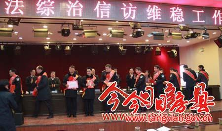 会上,蔡贤忠还与各乡镇签订了2014年综治、信访责任书;会议对2013年度全县社会管理综合治理工作优胜责任区、优秀责任人、先进单位、先进工作者、优秀平安村(社区)和2013年度信访工作先进单位、示范乡镇、先进个人,以及房县见义勇为称号获得者李丽、全县十佳政法单位、十佳政法干警等进行了表彰。
