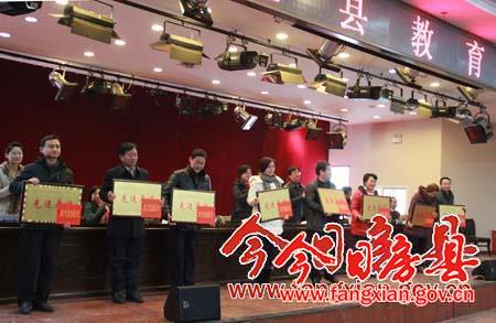会上,副县长林华代表县政府与各乡镇政府签订了教育工作目标管理责任书。会议还对城关镇等45个2013年度教育工作先进单位,谢登文等47名先进个人进行了表彰。城关镇、大木厂镇、住建局、人社局做了典型发言。