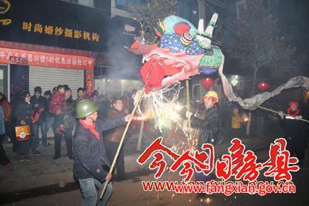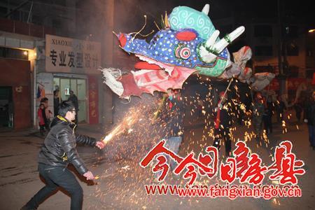 2月14日,农历正月十五晚,房县山城大街小巷张灯结彩,市民们舞龙灯、放鞭炮、燃焰花、放飞孔明灯。整个山城一片欢腾,居民们沉浸在欢乐的节日气氛中。记者抓拍了部分市民活动镜头,以飨读者。左图为市民观看舞龙表演;右图为市民放孔明灯。