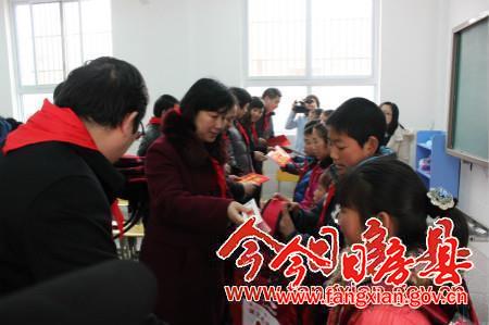 向白鸡小学20名贫困生发放助学金和学习用品