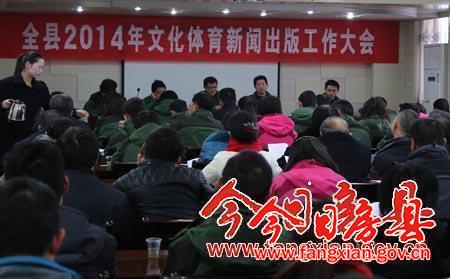 今日房县网讯 记者雷洁 通讯员李丽 报道:21日,文体局召开2014年文化体育新闻出版工作会议。会议传达、学习全省文化、新闻出版局长会议和全县三级干部会议精神,安排部署2014年工作任务并对2013年先进工作者进行表彰奖励,动员广大干部职工发扬成绩,创新出彩,团结实干,再创我县文化体育新闻出版事业新辉煌。