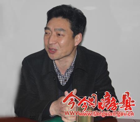 图为县移民局局长樊恭应主持会议并讲话