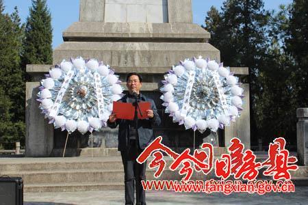 县委副书记张慧彬在革命烈士纪念碑前致辞时说,组织县委常委和县四家班子领导缅怀革命先烈的丰功伟绩,就是要提醒全县党员干部,学习革命先烈的崇高精神,时刻不忘先辈遗志,不忘党员义务;要通过重温入党誓词这种独特的学习方式,不断增强党员干部的使命意识、责任意识和奉献意识;要以自身实际行动积极践行入党时的誓词,以革命先烈为榜样,充分发挥共产党员的先锋带头作用,带头崇尚节约、反对浪费,带头艰苦奋斗、勤政为民,带头遵守纪律,清正廉洁,发挥党员干部在教育实践活动中的模范带头作用,为我县经济社会发展贡献力量。
