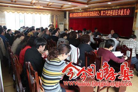 今日房县网讯 记者 王玮 通讯员 裴中东 报道:4月1日,县医院组织召开党的群众路线教育实践活动座谈会,就院班子成员以及医院的管理、运行等方面存在问题,听取全院职工代表的意见和建议。