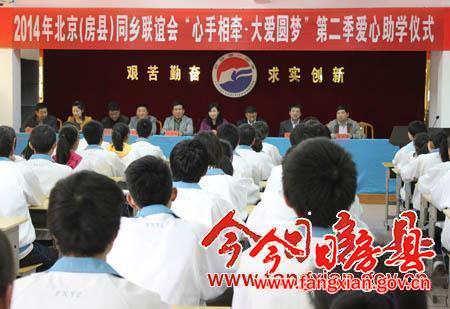 北京 (房县)同乡联谊会自2008年成立以来,一直致力于参与家乡建设、服务家乡经济、回报家乡人民。当得知家乡仍有一部分学生因家庭困难而无法完成学业的情况后,于2013年在北京工作的房县同乡发起了 “心手相牵·爱心助学”的倡议,向县一中160多名贫困学生提供了爱心资助。同时,他们还在自己与受助学生之间搭建起爱心虹桥,通过书信往来、电话沟通、邮寄学习资料等方式,给受助学生以情感关爱、精神鼓励和人生导航。