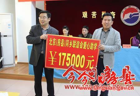 据悉,北京(房县)同乡联谊会本次又为县一中捐赠善款175000元,175名贫困学生受助。