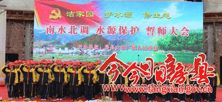 由大木厂镇小学200名学生组成的“护水使者”在活动现场齐颂“洁家园、护水源、修生态”的护水誓词,倡导全镇人民保护赖以生存的水资源,共同建设绿色环保、生态文明的家园。誓师大会还举行了南水北调水源地保护万人签名仪式。
