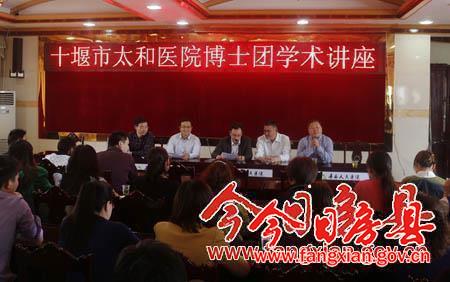今日房县网讯 记者 陈绍杰 通讯员裴中东报道: 15日,县人民医院挂职副院长、太和医院药学部副主任,湖北医药学院药学系主任杨光义博士邀请十堰市太和医院博士团来县人民医院进行学术讲座。县人民医院各临床科室主要负责人参加此次学术讲座。