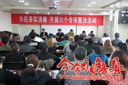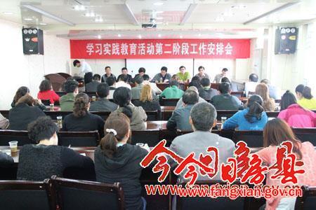 会议总结了教育实践活动第一阶段的工作,并对第二阶段的工作做了具体安排,深入学习焦裕禄同志事迹,深入开展“回头看”,查找存在的“四风”问题,开展批评和自我批评,争做新时期好干部;学习了党章的发展历程,党员的权利和义务,严明了党的纪律;分析了“六个专项整治”活动。