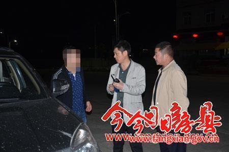 副县长、公安局局长柯正洪(右)在对可疑车辆进行询问