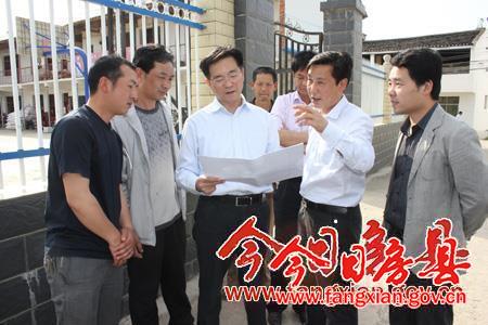 图为张慧彬一行在化龙堰镇高桥村察看高桥村民活动中心建设规划