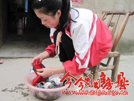王雪放学后忙着洗衣服