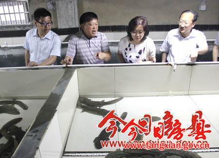 今日房县网讯 记者陈绍杰 通讯员付长飞 贯骏报道: 10日,省农科院农产品加工与核农技术研究所专家组一行来我县考察大鲵繁育养殖情况,副县长姚峰,县政协副主席张富华陪同考察。
