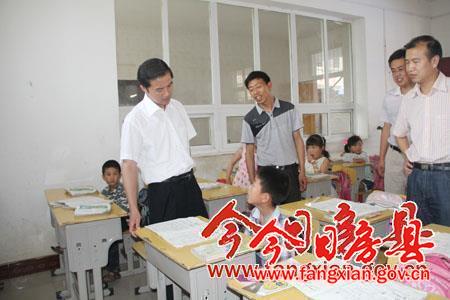 柯大成在回龙乡十一小学了解学生学习生活情况