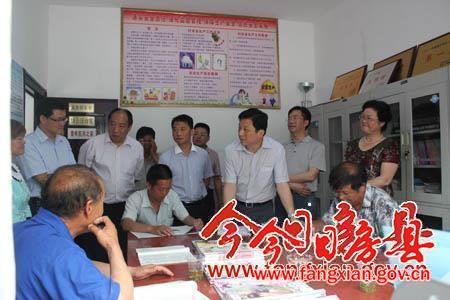 图为张良成一行在土城镇穿山村调研农家书屋建设情况