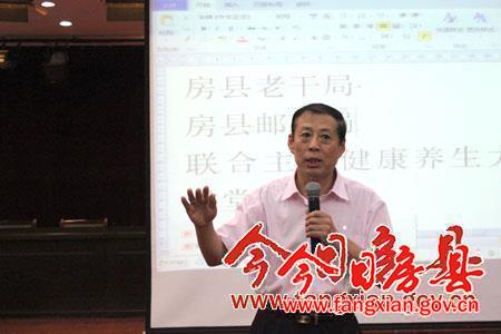 今日房县网讯 记者 高书文 通讯员 邹红 报道: 20日,县委老干部局、县邮政局联合举办离退休老干部健康公益大讲堂,为离退休干部传播健康理念,进一步提升离退休干部的晚年生活质量。国家一级心理咨询师、“辽海讲坛”主讲人、东北师范大学客座教授董恒波受邀主讲。