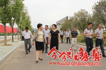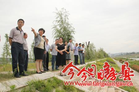 郧县县委常委、宣传部部长金菊(左三)一行参观生态河堤