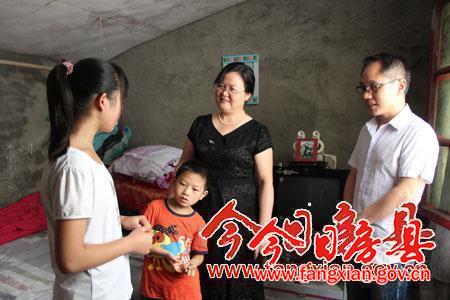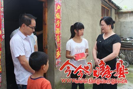 今日房县网讯 记者王玮 报道: 4日上午,县委常委、宣传部部长徐锦凤带领领县团委、教育局、文明办等部门来到城关镇联观村看望慰问全市第二届“美德少年”王雪,并为王雪颁发荣誉证书。